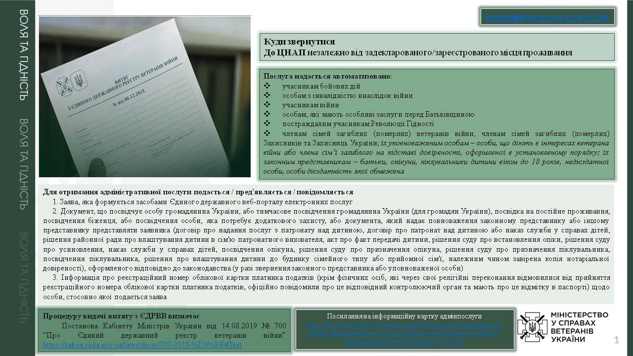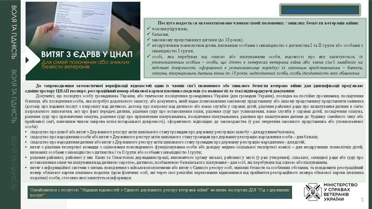 Надання відомостей з Єдиного державного реєстру ветеранів війни