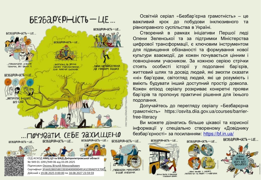 На виконання заходів, передбачених Планом проведення інформаційно- просвітницької роботи з населенням щодо правил безпеки життєдіяльності та поведінки в умовах надзвичайних ситуацій та воєнного стану у 2025 році, Навчально-методичний центр цивільного захисту та безпеки життєдіяльності населення Дніпропетровської області пропонує ознайомитися з пам’ятками: «Коронавірусна інфекція» та «Безбар’єрність – це…»: