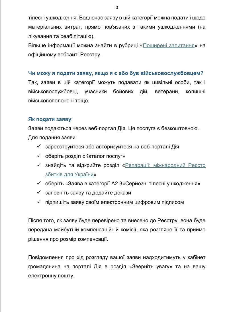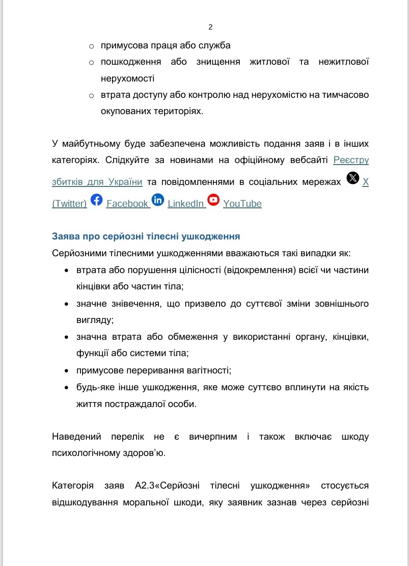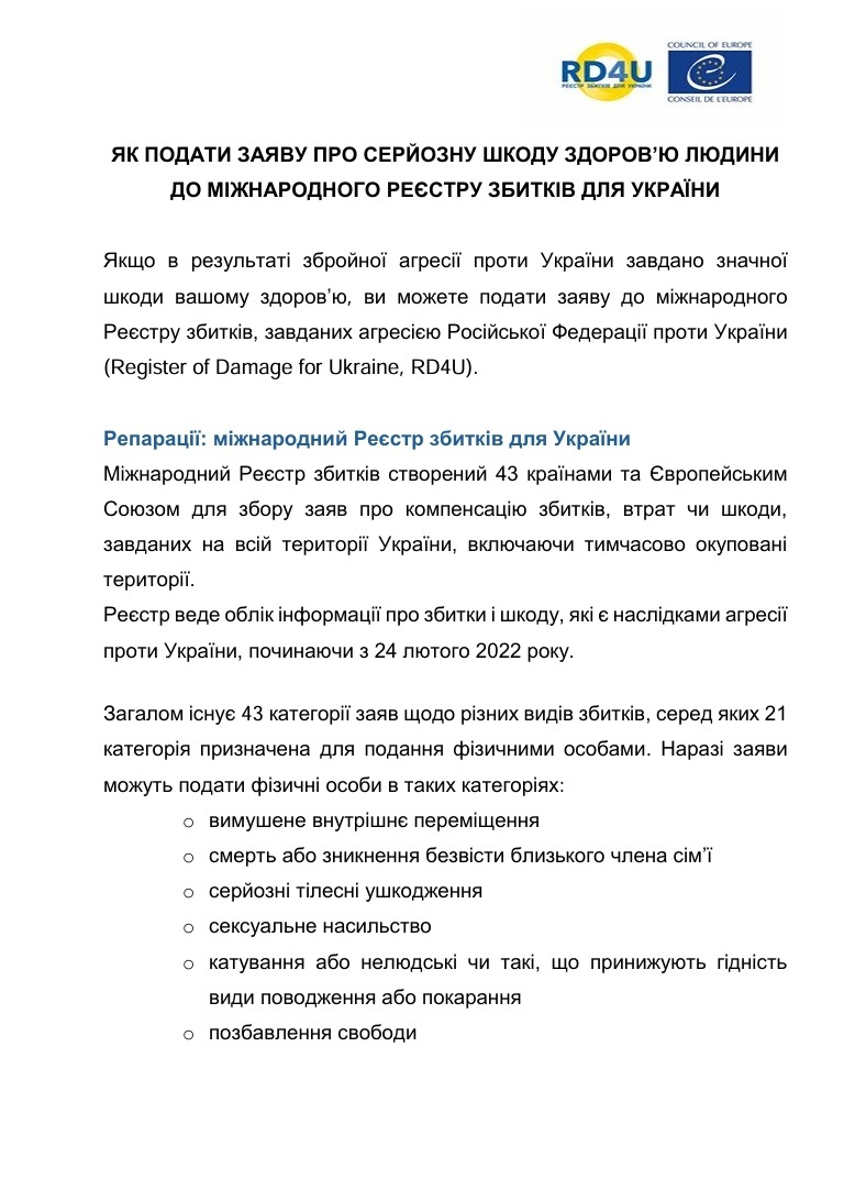 ЯК ПОДАТИ ЗАЯВУ ПРО СЕРЙОЗНУ ШКОДУ ЗДОРОВ’Ю ЛЮДИНИ ДО МІЖНАРОДНОГО РЕЄСТРУ ЗБИТКІВ ДЛЯ УКРАЇНИ